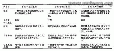 A2:对于不同行业、不同制造方式以及不同IT基础的供应链,其信息共享的内容和层次是不相同的,一般来说,根据信息共享的内容与目标、功能,可以将信息共享划分为3个层次,即作业信息层、管理信息层、战略信息层。