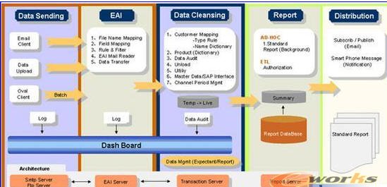 → 数据发送(DataSending):指支持各种商业合作伙伴以各种方式提交数据的方法和技术,包含三种方法:e-Mail、页面数据上载和客户端批处理上载。