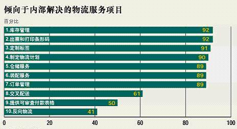 库存管理与物流可见度,以及供应链传送货物的能力是紧密相关的,而物流管理通常都是由库存管理开始的。具体的功能,则是围绕运输可见度以及如何使用相关数据实现及时交货等方面来展开。虽然这些功能是紧密相关的,但是它们的管理却是不同的。像大多数高科技公司一样,Celestica将公司内部流程和第三方解决方案揉合在一起,使之形成了恰当的平衡。 这家EMS巨头公司将其预测、库存计划和供应链实施信息留在系统内部进行管理,但他们同时也利用了十几家第三方物流(3PL)服务商为其提供产品出入境运输、仓储需求、供应商库存管理(VMI)中心、国际海关结算以及发货通知等服务。 这种业务模式在现代工业界相当普遍,这主要是因为业界对成熟物流模式的需求在日益增加,而产品生命周期和财政预算却在不断缩减。  图2倾向于内部解决的物流服务项目 4.1确定外包的范围 调查表明,物流经理们将运输、库存管理、包裹递送、仓储和订单管理服务排在需求清单较高的位置上。但是,有90%的被调查人表示,他们将内部资源放在诸如库存和订单管理、定制贴标、物流需求规划和仓储等较为敏感的地方。 对200家半导体元器件供应商、分销商和EMS提供商的物流经理进行电话调查的结果表明,交由第三方做的主要是实物的运输。而超过一半的被调查者称,他们将货物运输、结关手续、进出口手续和逆向物流服务(即退货)等服务进行了外包。 让公司决定将什么业务留在内部执行是件困难的事情,一般说来,凡是公司的战略性业务都将留在内部自行运营。公司绝不能将与自己核心业务有战略关系的业务外包出去,比如销售预测或产量决策等。如果一家公司希望利用物流服务商的服务,那他们就必须共享出一定量的信息,而没人情愿这样做。 管理库存总是在公司内部进行的。集成电路公司Tropian公司只将实物分销和订单完成等项目外包。