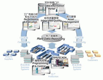 国内企业的MES市场正处于概念培育阶段,许多企业的领导者都在追寻一个将商业系统ERP与生产过程完美结合的解决方案,从而达到ERP与生产的统一,MES系统就当仁不让的成为首选。GE Proficy 解决方案所提供的功能则远远超过了常规的MES能力,通过一套无缝的、紧密集成的、完全模块化的应用架构将商务世界和生产制造合而为一。GE Proficy 通过其特有的工厂建模组态,根据实际情况,用软件的方式建立一个虚拟工厂,并将各种应用付诸其上,其核心应用软件Plant Applications为企业管理人员提供了一个实时的、智能化的生产分析和决策支持系统。
