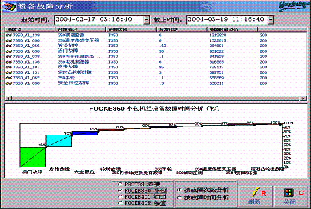 | | 生产流程跟踪和产品追溯 MES系统的主要功能之一就是实现对生成过程的跟踪,但是仅仅对制丝和卷包生产线进行简单的孤立的生产跟踪或者仅仅获得产量、品牌、批次等生产管理信息是不能全面体现出MES系统的特色和生产管理功能的,同时,如果对于这些生产过程跟踪信息不能进行进一步的利用和分析也将令MES系统失色不少。因此在本系统中不仅在生产流程跟踪的信息完整性和连贯性等方面进行了更深层次的挖掘,同时实现了产品信息追溯功能: * 生产流程跟踪:从生产计划中生产批次号生成开始,系统就开始跟踪每个生产批次的完整的生产过程,直到产品入库。也就是说,系统对于每批产品在那个制丝工序生产过、生产了多长时间、用了那些原料和香糖料配方、在那个储柜储存的,存储了多长时间、设备状态如何、工艺质量检测结果如何、是那个操作员操作的,在卷包车间那些机台进行的卷接和包装,设备发生了哪些故障、使用了何种辅料、废品有多少、是那些操作人员操作的、何时生产结束何时入库等等有关产品生产、原辅料、质量、设备各个方面的信息都进行了连贯的、全面的跟踪和记录,保证了系统庞大的数据库中存储的生产过程信息能够有一个清晰和合理的结构,更加便于统计和查询; * 产品追溯:基于生产流程跟踪获得的产品生产过程跟踪信息,可以灵活和完整的实现产品追溯功能,也就是说,用户可以查询过去任何一天生产了那些品牌、那些批次,其中任何一个批次生产过程中所包含的生产时间、产量、工艺线路信息,设备故障、停机、维修信息,质量检测、工艺参数信息,原辅料配方和消耗信息等等数据。产品追溯对于用户及时发现质量问题,改善生产流程,加强生产过程管理力度具有重要意义。 设备管理 设备管理包括如下功能: * 设备资料管理:系统中对于设备各项资料都能够进行全面的管理和查询,其中既包括了设备固定资产台帐、合同、使用手册等资料,也包括了电气和机械图纸、程序清单、操作说明、维修视频等资料。另外在分布于现场的各个工作站上,相关设备维修和管理人员能够方便的对这些资料进行检索和查询; * 设备基本信息管理:系统对于设备总成、关键件、故障列表信息都进行了分门别类的存储,为设备的维修和备件管理打下了坚实的基础; * 设备维修管理:系统在实现了设备维修管理的基础上通过和厂级设备管理部门的联网信息交换,实现了设备故障和维修信息的快速上报,能够及时发现设备问题并制定维系保养计划; * 设备备件管理:通过和厂级设备管理系统的信息交换,使得设备的备件管理更加全面和完整; * 设备任务管理:系统提供了设备维修、保养、润滑工作的计划制定、审批、执行、验收等工作的管理功能,并在各个现场工作站对设备任务进行及时的提示和检索查询 * 设备信息查询、统计和分析:系统借助于多种图表对设备实时运行状态、故障、维修、任务等信息进行灵活的统计分析查询,同时借助于SPC统计分析控制图,实现了设备信息更深层次的分析。下图为设备故障的SPC 巴雷托统计分析控制图:  质量管理 质量管理包括如下功能: * 质量标准管理:包括质量标准的接收、同步、分解、调整功能,质量标准不仅可以在各个现场工作站进行灵活的查询,还直接作为生产过程数据统计分析的依据; * 在线质量管理:对于从数据采集系统中获得生产过程实时工艺参数和数据,系统提供了多种方式进行统计分析,包括:报警分析、历史趋势分析、数理分析、SPC分析等等。同时允许用户对在线质量分析数据的数量、采样时间、分析对比方式进行灵活的配置; * 离线质量管理:系统对生产部、质检科、三级站质量检测结果都进行了及时的收集和存储,并以灵活的手段对这些信息进行查询和统计分析,帮助用户更加全面和及时的了解产品质量情况; * SPC统计分析:除了保留现有的烟草行业质量统计分析手段,系统在质量管理中引入了国际先进的SPC统计分析模式,借助于SPC统计分析控制图,用户可以对系统收集的各项在线和离线质量检测结果进行深入的统计分析,在质量事故发生之前就能够及时发现质量隐患并根据SPC统计分析结果采取及时有效的措施防患于未然。下图为SPC控制图实例:  人力资源管理 借助于Wonderware Factorysuite软件平台先进的用户管理体系,系统中引入了操作认证和用户信息两级用户管理的模式,只有具备相应的并且在有效期内的操作认证,用户才能具备某种系统操作权限。通过这样的用户管理模式,系统能够更加灵活和全面对各生产线操作人员和各部门生产管理人员进行管理并实现对系统用户的操作跟踪和记录。 最新进展 截至2004年6月,该项目已经取得了阶段性成果,获得了用户的认可,并进入了验收阶段。