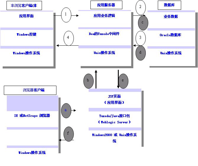 b) 界面服务器通过java/tuxedo接口包向送数据到应用服务器送数据到发出请求