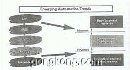 ERP/MRP的环境是以具体事务为基础的。其数据交换系对生产调度、运输安排或对生产计划要求的响应。与此不同的是,控制的决策必须在秒甚至更短的时间内完成,它对生产过程、操作人员,或对材料的操作需求作出响应。显然,实时环境和实时响应的差异影响着绝大多数的具体事务和在控制层的执行。传统的数据流和控制流在ERP与控制层之间存在着巨大的鸿沟。传统的信息管理系统向主管财务的总经理和财务管理负责人报告,居于管理层;而传统的工程生产信息则向负责生产的总经理报告;职责不同,相互之间的沟通不一定能做到及时且细致深入。