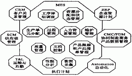 图3 MES的各功能模型与企业其他信息化系统的关系