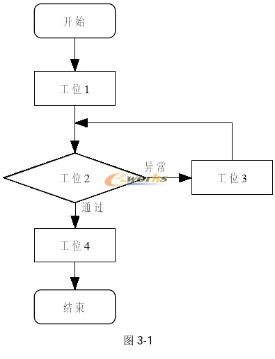 工艺路线是指产品的生产方法。通常我们用流程图来表示工艺路线,流程图由当前工位、结果、下一工位组合而成,如图3-1。