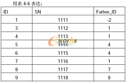 第二种方法是直接记录各序列号之间的关联关系,形成一棵“树”。比较而言,第一种方法方便形成批量数据关联关系的报表,而第二种方法隔离了序列号数据与产品结构,所以产品的结构变了也不会影响历史数据。