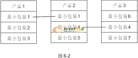由图可以看出,最小包装1被应用到产品1、产品2中,最小包装4被应用到产品2、产品3中。假设产品1应用到的物料1数量等于2,那么这个物料有可能是在同一个最小包装里的,也有可能是在不同的包装里的,那么怎么区分定义呢?