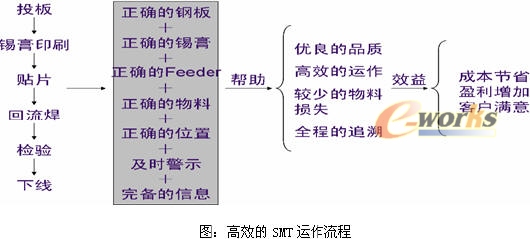 | | 一般可获得的效益是: 1)能随时提供产品完整真实的生产过程数据,增强大客户对企业内部生产过程质量的信任 2)对于客诉,可借助详实的数据,很快定位到RootCause,给予客户快速回应,并且现场改善效果明显,在客户满意度上能得到不少加分。 3)对于企业内部发现的问题产品,可通过生产历史和品质信息的获取,帮助进行问题的分析,同时对于同样问题是否出现在其他产品上,也可以进行快速的界定。 4)对于问题物料,可以快速定位到其所影响到的产品以及产品所在的位置。笔者曾辅导过的一家厂商,在发现物料本身就存在缺陷时,生产线上对该物料已使用了2天多的时间。借助系统,很快查明了这些产品在厂内产线上、半成品库内和成品库内的数量及序列号,同时也查明了出货到客户的产品的数量及序列号。通过厂内返工和厂外召回既解决了一次品质灾难,同时也给客户展示了企业的诚信和对品质管理的严谨。06年7月1日欧盟RoHS指令已正式实施,对于企业来说,为了减少未来潜在不合格物料对企业的影响,除了在采购物料上、生产环节上进行把关外,还需要拥有快速准确追寻产品的能力,以便将该方面对企业带来的损失降低到最小 5)能快速识别出非本公司生产的假冒产品或假冒部件。因为公司内生产的产品都有公司内部规定的唯一识别号,并且在生产过程中记录了产品所使用的部件的识别号,而假冒产品或假冒部件尽管可以盗用正品的识别号,但往往在产品与部件的对应上出现马脚,而被识别出来。 2.制程防呆: 通过生产模型的搭建,控制生产过程中非授权操作、上料错误、站点误投等异常。 验证的范畴: 1) 授权验证,只有通过授权验证后,才可以执行某岗位的操作,并可以限定可操作的产品或设备 2) 条码规则验证,对企业的条码规则进行防错。 3) 流程验证,保证产品按照事先设计好的流程流转,减少跳站、漏测等行为。 4) 物料验证,保证产品在岗位操作上使用规定的物料。 5) 完整性验证,保证每一岗位的操作动作都完整执行。 6) 可用性验证,对物料的有效期,ECN的变更生效时间进行验证。 7) 存在性验证,验证产品序号是否是存在的,防止非法的产品序号被抽检或入库 8) 冲突性验证,防止多个产品实物使用同一产品序号,确保实物与产品序号对应的唯一性 9) 状态验证,防止产线上产品误流转,如尚在抽检过程中的产品被误入库。 10) 兼容性验证,根据产品配置来保证是否允许产品的混单,混箱,混料等情况。 因为验证会耗用较大的系统计算资源,对于企业内部开发的MES或小软件公司的MES来说,由于不能很好地解决性能的问题,一般仅能做很少部分的验证工作。只有专业的大型软件公司,针对生产业务抽象出高效率的生产模型,并借助专有的模拟运算,才会涵盖上述的验证工作。解决的问题重点是产品生产流程的一致性。 在数据采集&产品追溯问题解决之后,一般要考虑实施制程防呆。 一般可获得的效益是:工程人员、生产一线管理人员或品质人员只需要在生产模型中将生产工艺规则固定下来,系统就可以辅助操作人员严格按照设定的规则进行操作,保证把事情第一次就做对。 俗话说"80%的品质问题都是管理问题",管理人员不能总是责怪生产线的操作人员素质低,没记性,而要多想想,是否有更简便的办法帮助他们少犯错误,不犯错误。制程防呆就是在帮助企业在培训时间减少,人员流动较多、产线扩线较快的情况下,也可以较容易保证产品生产流程的一致性。 3.eSMT: 进行SMT上料防错、缺料预警、物料追踪、物料盘点、钢板管控、锡膏管控、Feeder管控、MSD元件管控,期望达成下图所示的高效的SMT运作流程。  对于拥有SMT设备的企业,在实施数据采集&产品追溯和制程防呆后,eSMT功能将是重点考虑的功能。 | | | | |
