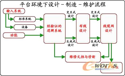 上图简要描绘出汽车平台化设计理念下从设计到维修的整个流程。流程中引入了“交互式设计”以及“生成式设计”两种理念、方法学以及配套的工具集,相关的方法学和工具面向平台层次的系统集成、互联布线综合以及线缆网工程化。目前主流OEM 厂商普遍开始采纳的流程兼具以下特点: