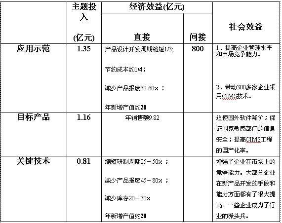 对于应用示范和目标产品项目,要求企业自筹大部分经费,863经费只起引导作用。cims主题投入应用示范工程的经费1.3亿多元,而带动企业自筹经费总计约16亿元,国家投入与企业投入的比例为1:12,充分体现了四两拨千金的引导作用,同时也反映出企业实施cims工程的积极性和潜在的经济效益。