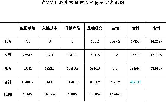 从1988年至2000年,cims主题共投入经费48613.2万元(包括计划外拨款1510万元)。表2.2.1为各类项目的投入情况。