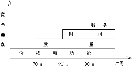 九十年代,增加了服务这个要素,包括大量的客户化服务,缩短定货交付周期,改进售后服务。