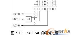 【例2-1】 64H+64H后,CY和OV各是多少?