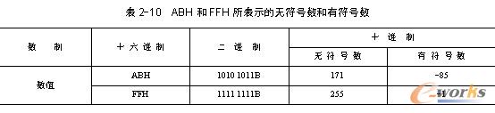 解:ABH和FFH所表示的无符号数和有符号数见表2-10。