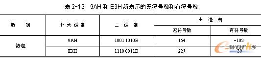 解:9AH和E3H所表示的无符号数和有符号数见表2-12所示