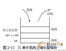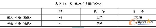 ② 51系列单片机中堆栈工作方式是由低向高堆放的,属向上增长型,如图2-13所示。51单片机栈顶的变化见表2-14。