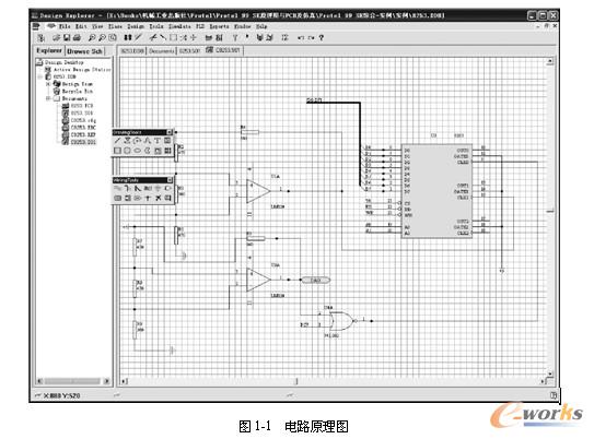 电路原理图是电路设计的开始,是用户设计目标的原理实现。其图形主要由电子器件和线路组成。如图1-1所示为一张由Schematic模块生成的电路原理图。Schematic模块具有如下特征。