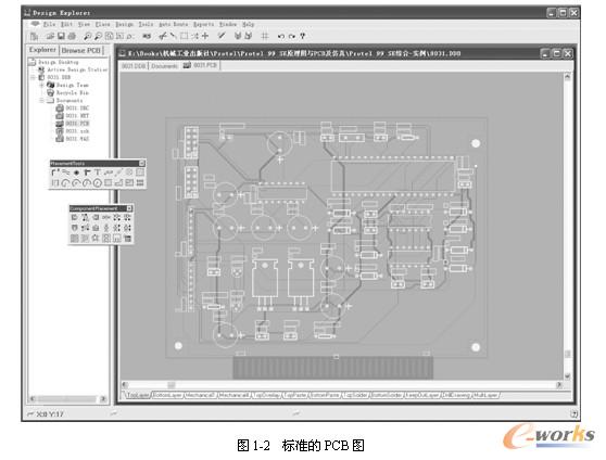PCB是由电路原理图到制版的桥梁,设计了电路原理图后,需要根据原理图生成印制电路板,这样就可以制作电路板。如图1-2所示为一张由原理图生成的PCB图。PCB模块具有如下主要特点。