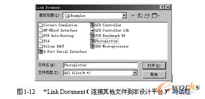 该命令表示连接其他类型的文件到当前设计库中。执行该命令后,系统弹出如图1-12所示的对话框,用户可以选择其他文档的快捷方式连接到本设计平台。