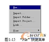 文件管理主要通过File菜单中的各命令来实现。该菜单命令主要用于文件的管理操作,如文件的打开、新项目的建立等,如图1-7所示。File菜单包括14个子菜单。