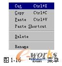 用户可以对文件对象进行复制、剪切、粘贴、删除等编辑操作,文件编辑命令位于Edit菜单中,如图1-16所示。