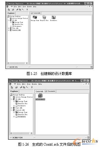 2)建立或打开设计数据库后,系统将显示如图1-25所示的界面。此时用户就可以进行创建新的原理图文件操作。