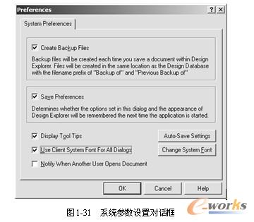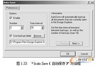 如果用户希望在设计工作的过程中,系统定时自动保存文件,则可以单击Auto-Save Settings 按钮,系统将会弹出如图1-33所示的对话框。