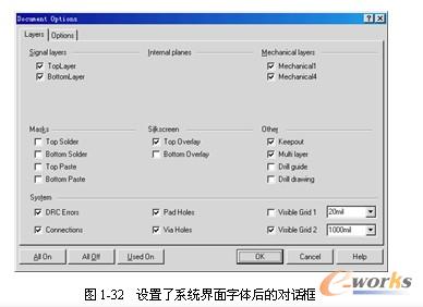 在该对话框中,取消Use Client System Font For All Dialogs复选框的选择,然后单击OK按钮,退出此对话框,系统界面的字体即可变小,并且在屏幕上全部显示出来。如图1-32所示为设置了界面字体后的对话框。