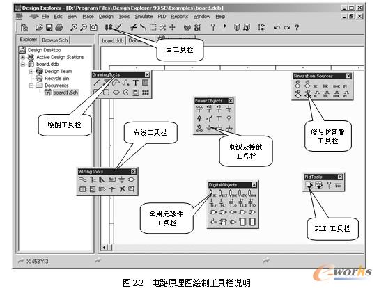 Protel 99 SE的工具栏有Main Tools(主工具栏)、Wiring Tools(原理图布线工具栏)、Drawing Tools(绘图工具栏)、Power Tools(电源及接地工具栏)、Digital Tools(常用元器件工具栏)、Simulation Sources(信号仿真源工具栏)、PLD Tools(PLD工具栏)等,如图2-2所示。充分利用这些工具会极大地方便电路图的绘制,下面就介绍几个主要工具栏的打开与关闭。