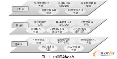 2)在网络层,主要涉及无线通信和网络协议的设计。由于骨干网络环境复杂,在实验室呈现 的难度及成本较高,本书主要以短距离网络为例来设计实验,包括短距离无线通信实验 (433MHz、2.4GHz)、无线自组网实验、IEEE 802.15.4及ZigBee协议实验等,可以从原理及概 念上让读者理解网络协议的设计及实现。