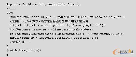 android.net. *包实际上是通过对Apache中HttpClient的封装来实现的一个HTTP编程接口,同时还提供了HTTP请求队列管理以及HTTP连接池管理,以提高并发请求情况下的处理效率。除此之外,还有网络状态监视等接口、网络访问的Socket、常用的URI类以及与WiFi相关的类等。