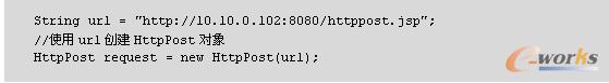 本实验中采用Post方式来请求网络数据。使用Post方法首先要使用URL创建一个HttpPost对象,代码如下: