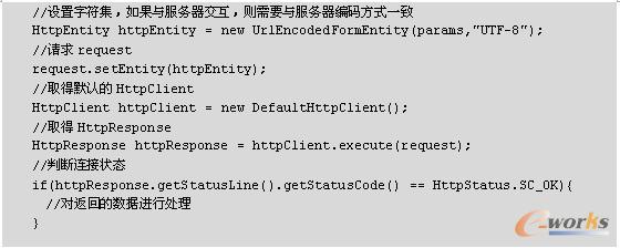Post方式还需要设置所使用的字符集,最后通过HttpClient来请求这个连接,返回响应并处理,代码如下: