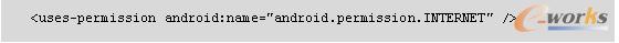 代码编写完毕,为了使程序拥有访问网络的权限,要在AndroidManifest.xml中添加如下内容: