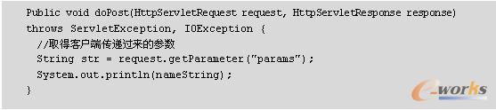 服务器端代码的编写,在后台服务器只需要编写一个能够接收客户端传递过来数据的Servlet就可以了。Servlet的doPost方法代码如下: