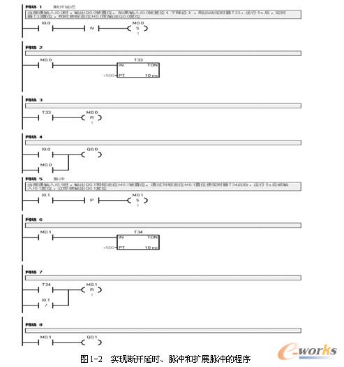 利用S7-200 PLC的“接通延时”(ON-Delayed)定时器,产生断开延时(OFF-Delay)、脉冲(Pulse)及扩展脉冲(Extended Pulse)。
