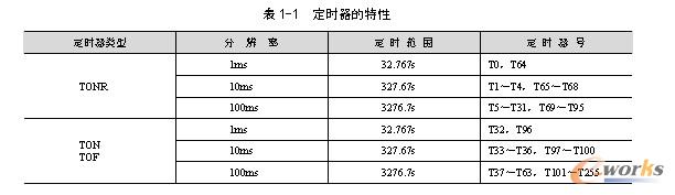 S7-200 PLC中有三种类型的定时器:接通延时定时器TON、保持型接通延时定时器TONR和断电延时定时器TOF,有1ms、10ms和l00ms三种分辨率,分辨率取决于定时器号,如表1-1所示。要正确使用定时器,需要熟悉各种类型定时器的工作原理,控制定时器的启动、停止和复位是用好定时器的关键。