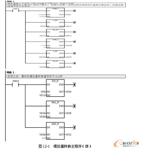 图12-1所示为上述公式的实现程序及注释,即模拟输入量进行工程量转换的参考程序。