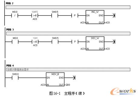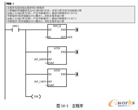 使用I/O中断。根据I0.0的状态进行计数,如果输入I0.0置为1,则程序减计数;如果输入I0.0置为0,则程序加计数。输入I0.0的状态改变,则将立即激活输入/输出中断程序,中断程序0或1分别将存储器位M0.0置成1或0以控制减计数或加计数。