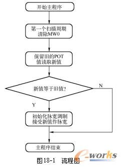 在程序的每次扫描过程中,模拟电位器0的值由特殊存储字节SMB28复制到内存字MW0的低字节MB1中。将模拟电位器0的值除以8(即右移3位)作为脉宽,脉宽和脉冲周期的比率大致决定了灯泡的亮度(相对于最大亮度)。除以8的目的是去掉SMB28所存值的3个最低有效位(由于抖动等原因模拟电位器的值每个周期都有可能发生变化),从而使程序更稳定。如果模拟电位器的值发生变化,则将重新初始化输出端Q0.0的脉宽调制,而模拟电位器的新值将被变换成脉宽的毫秒值。
