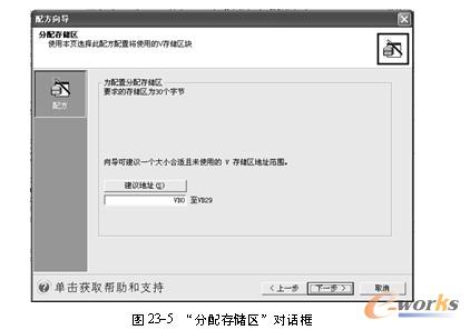 单击图23-4中的“下一步”按钮,进入“分配存储区”对话框,如图23-5所示,选择“建议地址”。