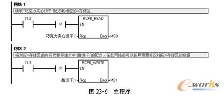 单击图23-5中的“下一步”按钮,使用默认配置名称0,完成配方向导的组态配置,系统自动生成RCPx_READ和RCPx_WRITE两个子程序,分别用于将指定的配方从存储卡中读取到V存储区和将V存储区中的配方值写入存储卡。