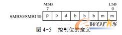 PLC用特殊寄存器的字节SMB30(对PORT0,端口0)和SMB130(对PORT1,端口1)定义通信口。控制位的定义如图4-5所示。