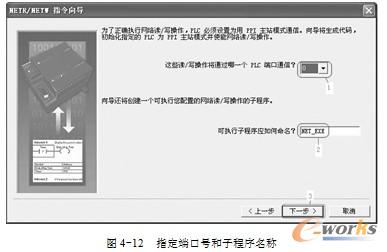 3)指定端口号和子程序名称。由于CPU226有0和1两个通信口,网络连接器插在哪个端口,配置时就选择哪个端口,子程序的名称可以不作更改,因此在图4-12所示的界面中直接单击“下一步”按钮。
