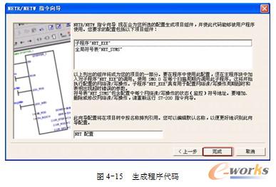 6)生成程序代码。最后单击“完成”按钮,如图4-15所示。至此通信子程序“NET_EXE”已经生成,在后面的程序中可以方便地进行调用。