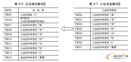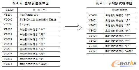 然后再列出主站接收数据缓冲区和从站发送数据缓冲区,见表4-6和表4-7。