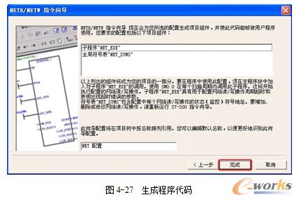 6)生成程序代码。最后单击“完成”按钮,如图4-27所示。至此通信子程序“NET_EXE”已经生成,在后面的程序中可以方便地进行调用。