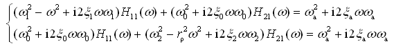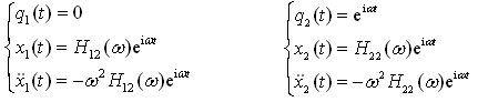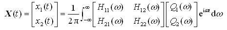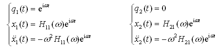 求χ1,χ2对应于输入q1的频率响应函数Η11(ω),Η21(ω)。根据单位谐函数法,令