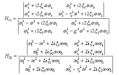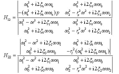 式中,ω为垂直振动的固有频率,;ω2为俯仰振动的固有频率,