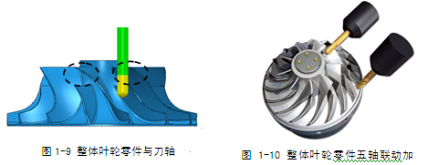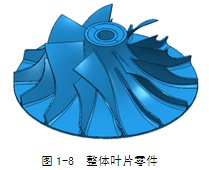 另外,这一优势在加工空间的、平滑的三维自由型面方面尤为重要,例如航空发动机和汽轮机的叶片、舰艇用的螺旋推进器以及许多特殊曲面特征。如图1-8所示为汽轮机整体叶片零件。